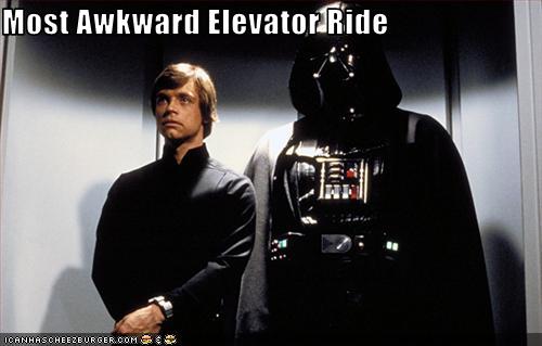 Awkward, Elavator, Darth Vader, Luke Skywalker, Star Wards