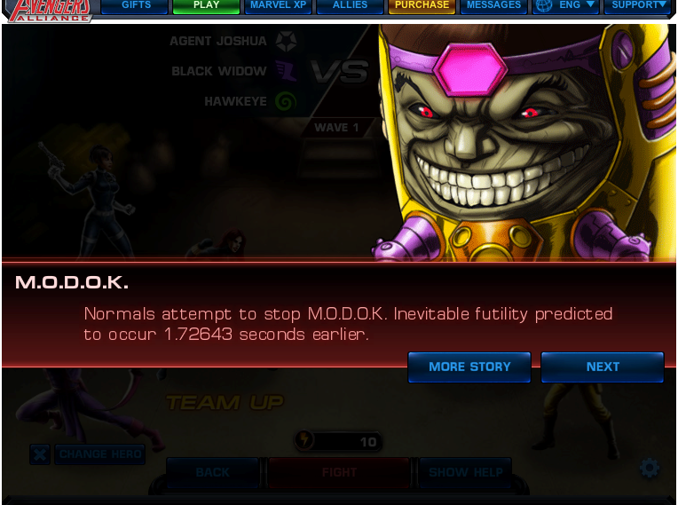 That leads me to my favorite heroes. Iron Man really is the most effective, and Hawkeye is not half bad. The heroes who throw some type of fire are generally the best. However, if you’re playing for free (like me) you kind of have to take what you can get.