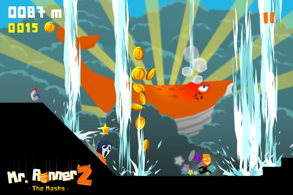 Mr. Runner 2: The Masks is the sequel to Mr. Runner, which has been downloaded more than five million times. I played Mr. Runner 2 on my iPhone 4; it is not meant to be played on an iPad.