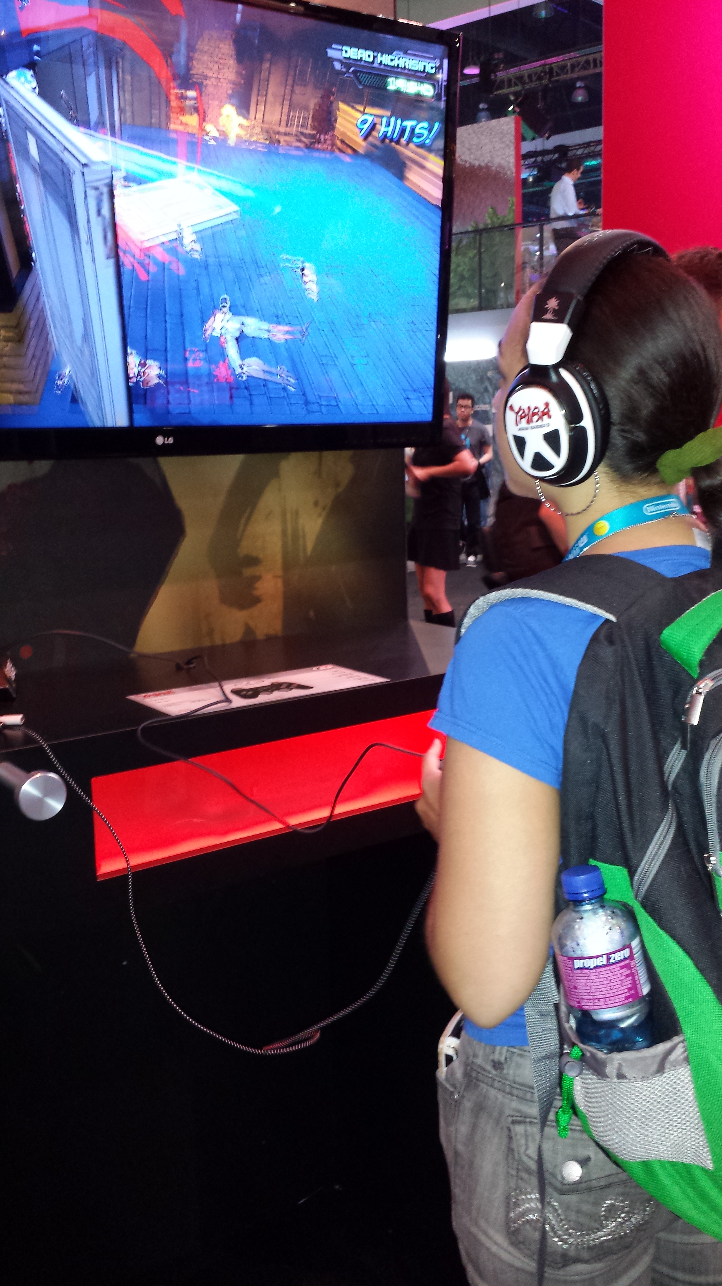 My first stop was Yaiba: Ninja Gaiden Z, an upcoming third-person combat game from Tecmo Koei. Keiji Inafune, creator of Mega Man, is involved with the project, and it showed. I loved the new art style and the smooth, just plain fun combat mechanic. I didn’t love that the enemies are zombies and the main character is part cyber ninja, but I guess that’s what’s in style right now. I quite enjoyed slinging zombies at other zombies – there’s just something so satisfying about that. The game is in development for PS3, Xbox 360, and iOS and is set for an early 2014 release.