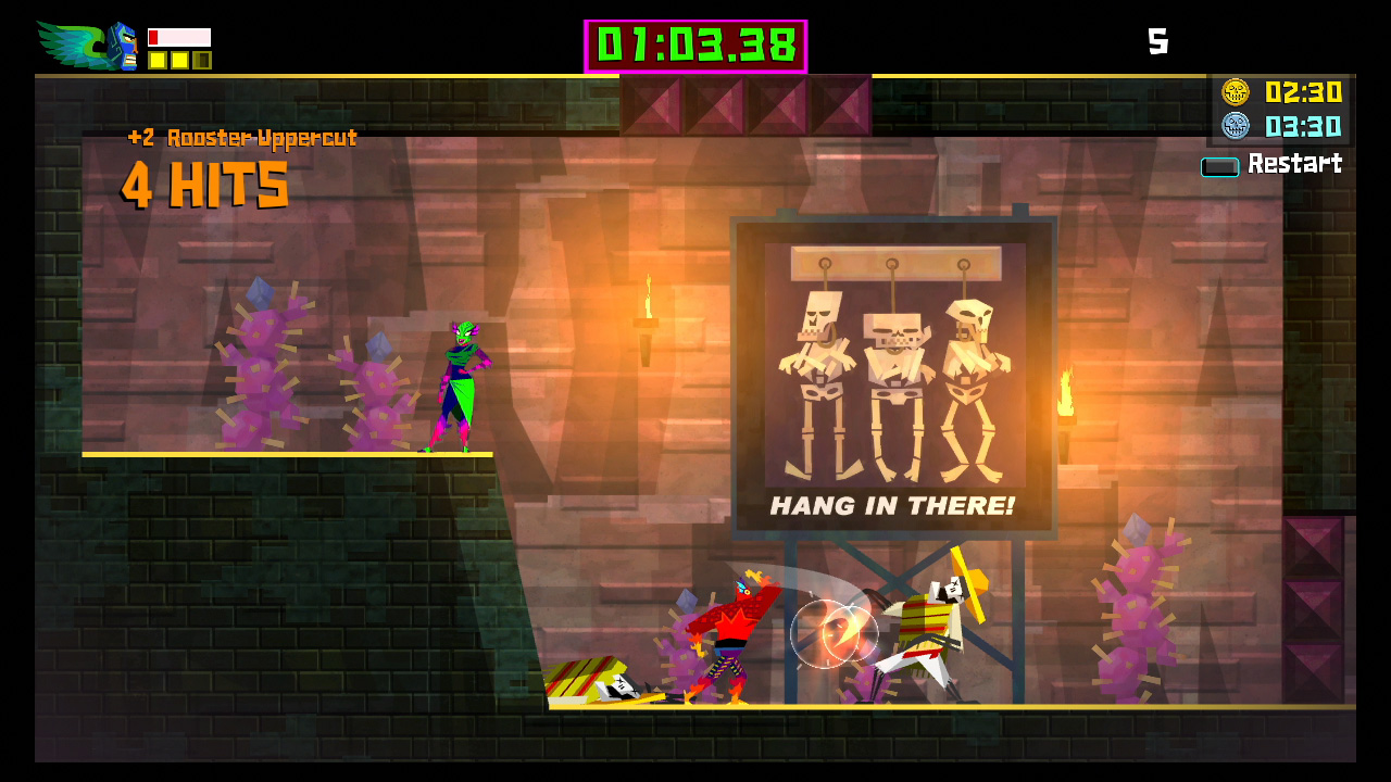 If you’ve played Guacamelee through and won the super special chicken ability, these levels may actually seem too easy for you, with only two or three providing a real challenge. However, since you only need ten medals each to win the costumes, you can actually just skip the hardest levels completely, leaving only the truly masochistic or trophy hunters to take on the challenge.