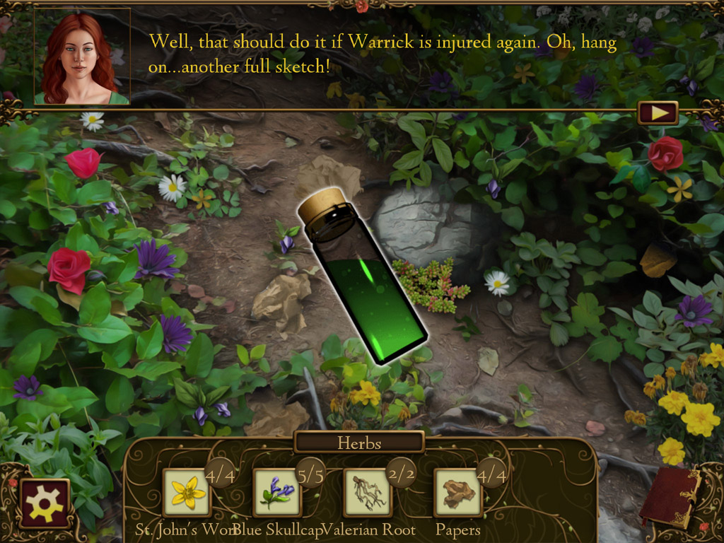 Most of the gameplay consists of dialogue choices, but these are broken up by both hidden object scenes and puzzles. You are able to skip these sections at no consequence, which is especially nice when you’re replaying the game to see what the different paths are. Rose keeps a diary over the course of the game, which will reveal what she’s thinking about herself, her thoughts on the four men, and sketches of herbs (she is a trained physician).