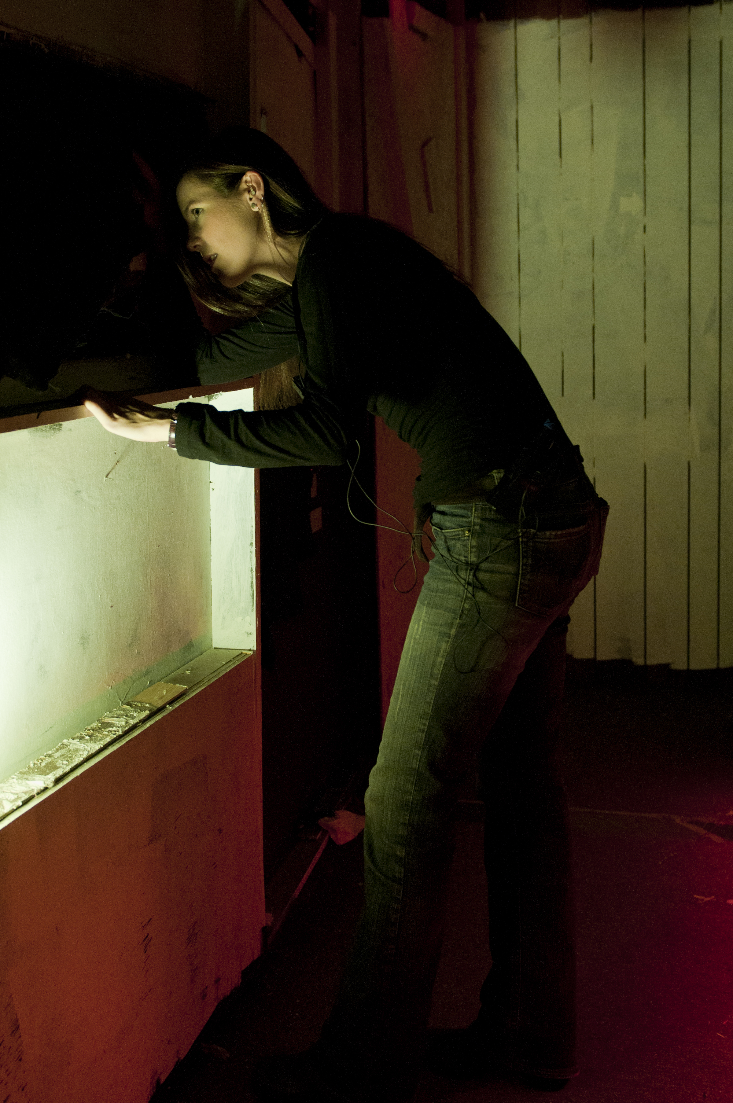 I LOVE watching people in the haunt. There are some key spots I like to hide and watch through our peep holes that pepper the walls. I’ll plant myself in front of one and just watch as the customers go through, noting how they react to the different scares, watching differences between men and women, young and old, couples and friends. It’s such a privilege, to witness individuals in an extremely primal and raw state. There is one spot in the haunt that has a loft. I’ll often sneak up there and watch from above where I can see about three different rooms at the same time. I’m really lucky.