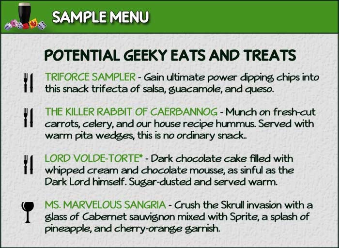 They’re planing an awesome geeky-themed menu, which you can see a sample of: