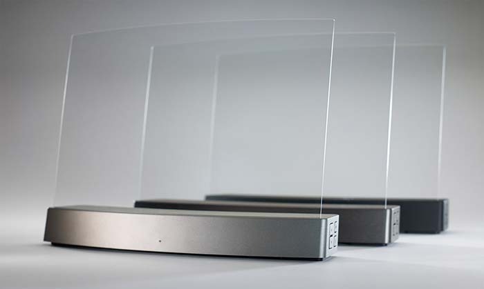 That glass is used to make soundwaves, which disperse in 360 degrees. You can get one right now for $349. THIS IS SO COOL!