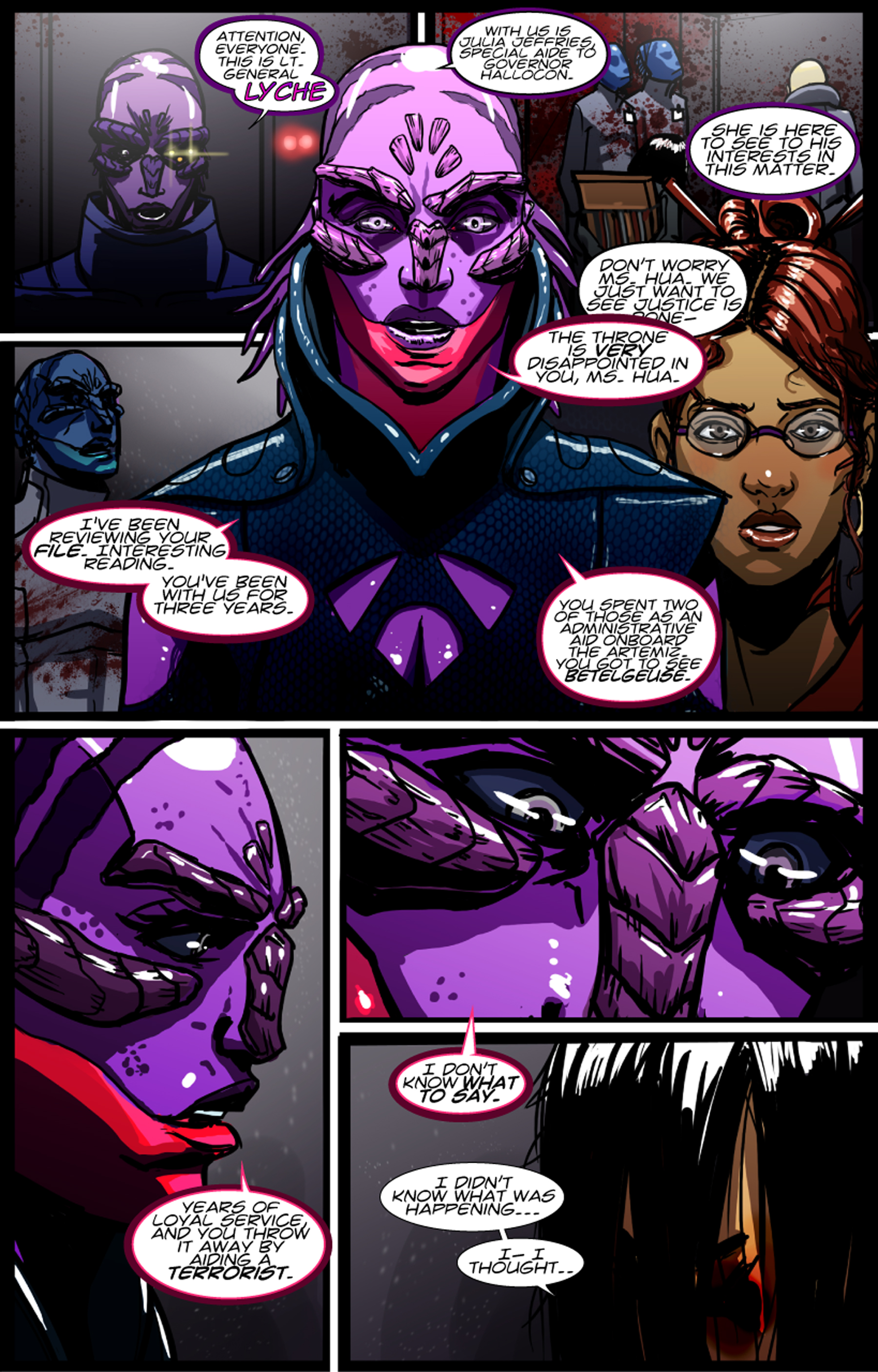 By no means is it perfect, as there are minor typos, and some will take issue with the heavily saturated art and often stylized faces. Artistically, the strong points are alien faces and technology, and I loved seeing the diverse cast of characters. How many Jewish super heroes have I run into? I think the art and writing also really capture the vibe of New York City perfectly. Even future, alien-infested NYC!