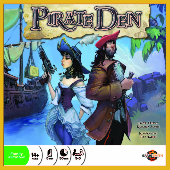 “Pirate Den is a pirate-themed bluffing game for 3 to 5 players ages 14 and up that plays in less than 30 minutes. It’s ideal for casual gamers looking for a fun time as well as deeper strategy players looking for a quick filler. Adding rum to the mix makes for a great evening of gaming with a truly fun and engaging pirate theme!”