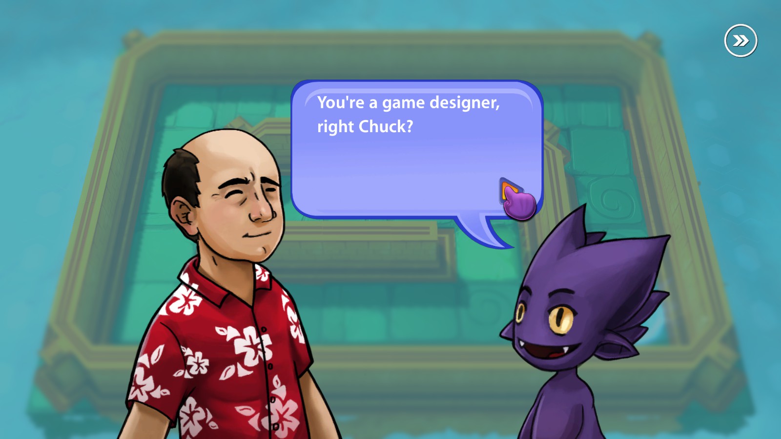 So, what the heck is Chuck’s Challenge 3D? Well, first, I want to point out that the strange, cute little alien guy you play as is not Chuck. Rather, Chuck is a game designer who is whisked off to the purple alien’s world for the purpose of entertaining him. Chuck creates a series of maze-like rooms that our hero must navigate and reach the end of, each time trying to complete them with more efficient times. As you might expect, the areas get much more challenging as you progress, but thankfully, the game’s designers learned a lot from the successful games of the genre and introduce new challenges slowly so that the player learns about things as they progress. Even though the game does get quite difficult, nothing really feels unfair about it.