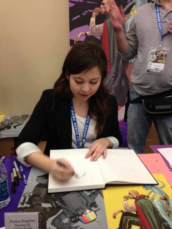 One of the best artists in the industry (male or female) has got to be Fiona Staples. She’s currently the artist of the incredible comic book series Saga, which is written by Brian K. Vaughn and published by Image Comics. Her work on Saga alone proves that comic books are as much about the art as they are about the story. The harmonious marriage between BKV’s story and Staples’s brightly colored and highly detailed art is what drives the comic to be successful enough to have fans hanging on for every issue. Staples has also won several awards for her work in Saga, including several Eisner Awards, Hugo Awards, and Harvey Awards. She’s also won awards for her cover art on titles such as Superman/Batman, DV8: Gods and Monsters, and more.