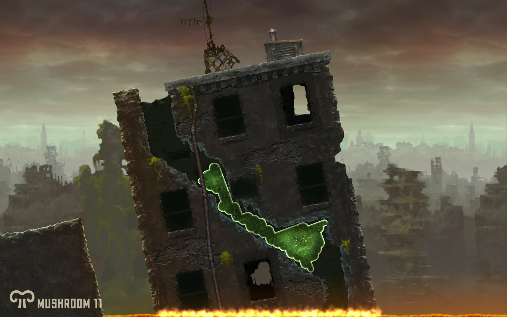 Mushroom 11 from Itay Keren was another game that really stood out in the Indie Megabooth. It’s a unique puzzle-platformer in which the player deletes parts of an amorphous green blob so that it grows back in other places and moves forward. It sounds simple enough, but the player soon encounters obstacles that require very particular movements, deletions, and shapes to navigate through. According to the developers, the game is currently set to release on Steam and Android devices by January of 2015.