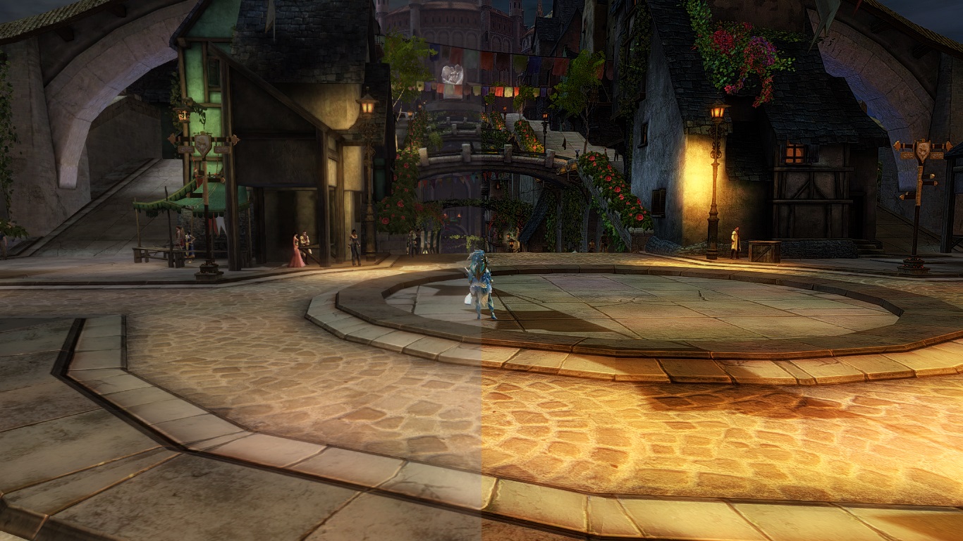 Here, in this article, I’m including some before-and-after images, created through the program itself, that has the left half of the screen using normal maximum settings from Guild Wars 2 and the right half using a custom preset I created with SweetFX. To me, the difference is obvious, and it amazes me what we consider “pretty graphics” by default until we get something like this.