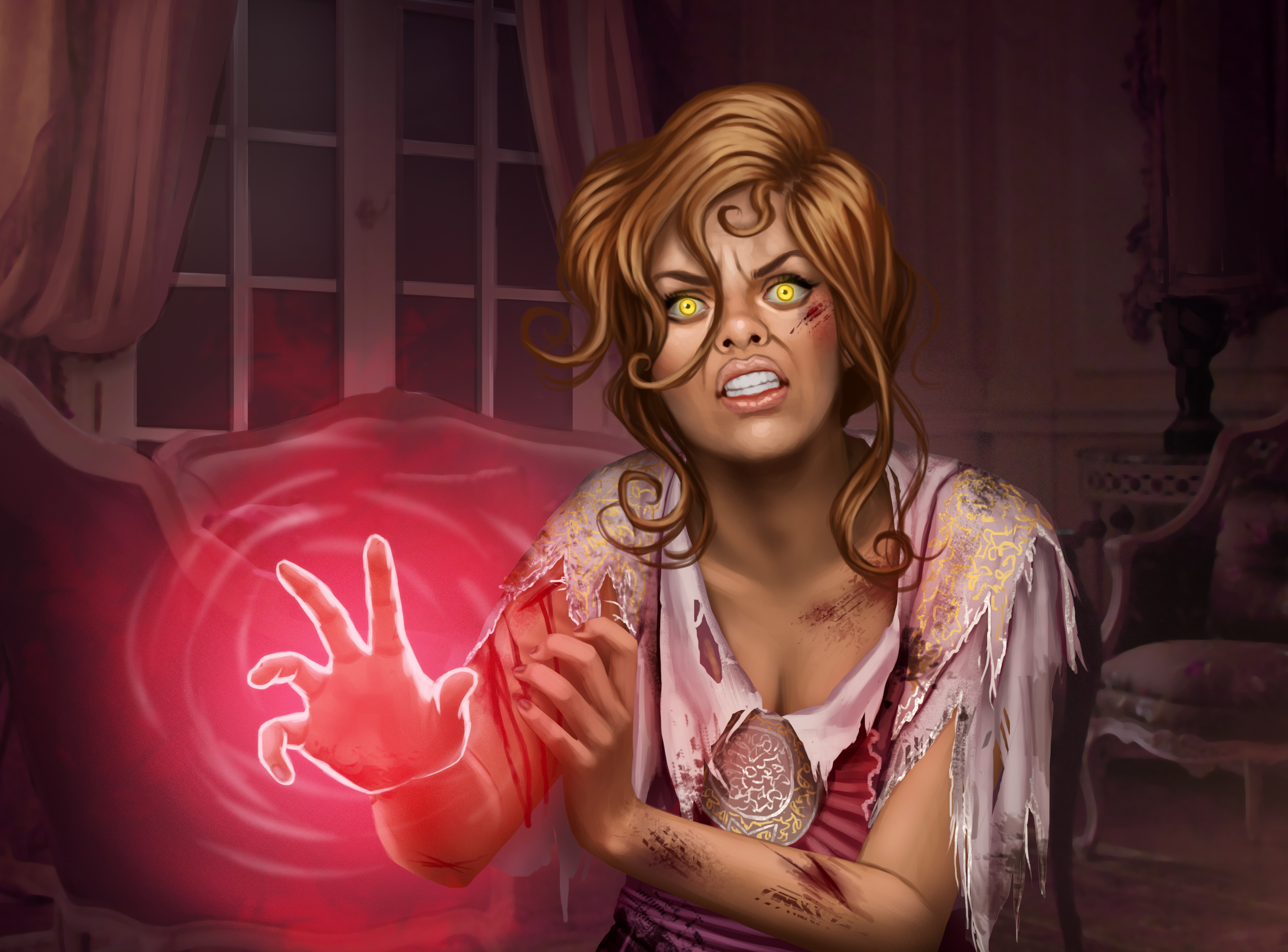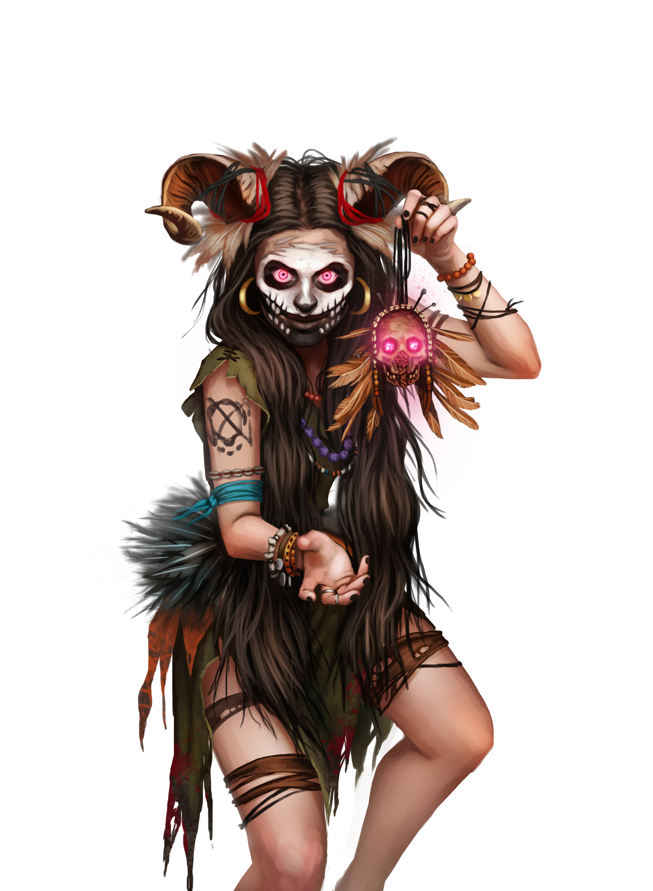 Jessa, also known as the Blood Witch, has a voodoo vibe. She lives in a forest where all the leaves of the trees are blood-colored and the bark looks like it’s bleeding. Isaac said she’s kind of like Ursula from The Little Mermaid because people come to her with their problems, but there’s always a price. Many people are terrified of her, and stay the hell away from the woods. But because of the prophecy, she’s now coming out of the woods and attacking.