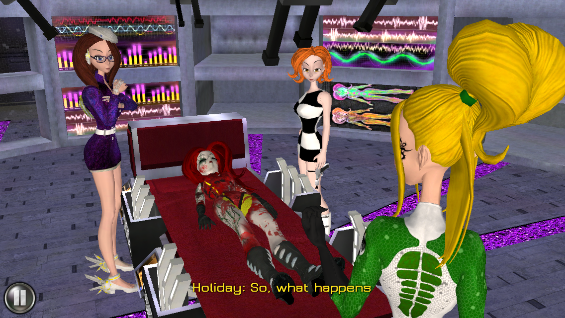 Gameplay is split between two main modes, story progression and dialogue. Dialogue choices (which are modeled on Mass Effect‘s dialogue wheel) sometimes involve attitude choices – professional vs. rogue. I played through as mostly professional, but couldn’t resist being a bit sarcastic at times. You’ll also be asked to side with either one character or another at various points throughout the game. All of these will influence your ending. Sometimes it felt like I wasn’t influencing things enough, but I appreciated the choice being there at all. Apparently there are 24 different endings!