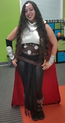 First up, we have Sarah! “I was a made-up warrior woman, using pieces from my old Thor costume. As evidenced by the crescent moon, I clearly serve a moon goddess, perhaps as a temple guard? Who knows, dude.”
