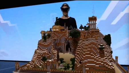 His Minecraft world expanded in three dimensions. He could zoom in on characters, peer through windows, and even raise the whole thing up to look underground. The HoloLens responded to his voice. For the end, he threw lightning at some pigs, because if you’re going to go out, go out on undead bacon.