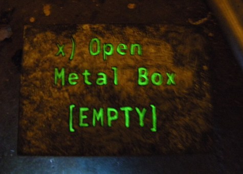 The box needs some serious aging for that post apocalyptic look. After so much Halloween work, I’ve gotten pretty good at making new stuff look ancient and full of tetanus.