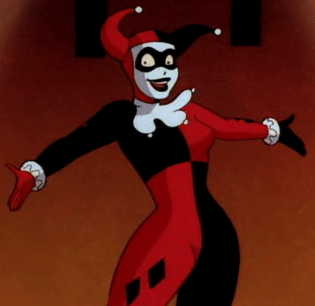 Here’s the first Harley Quinn outfit. Get it, because her name sounds like Harlequin, WHICH WAS WHY JOKER WAS FASCINATED WITH HER IN THE FIRST PLACE!