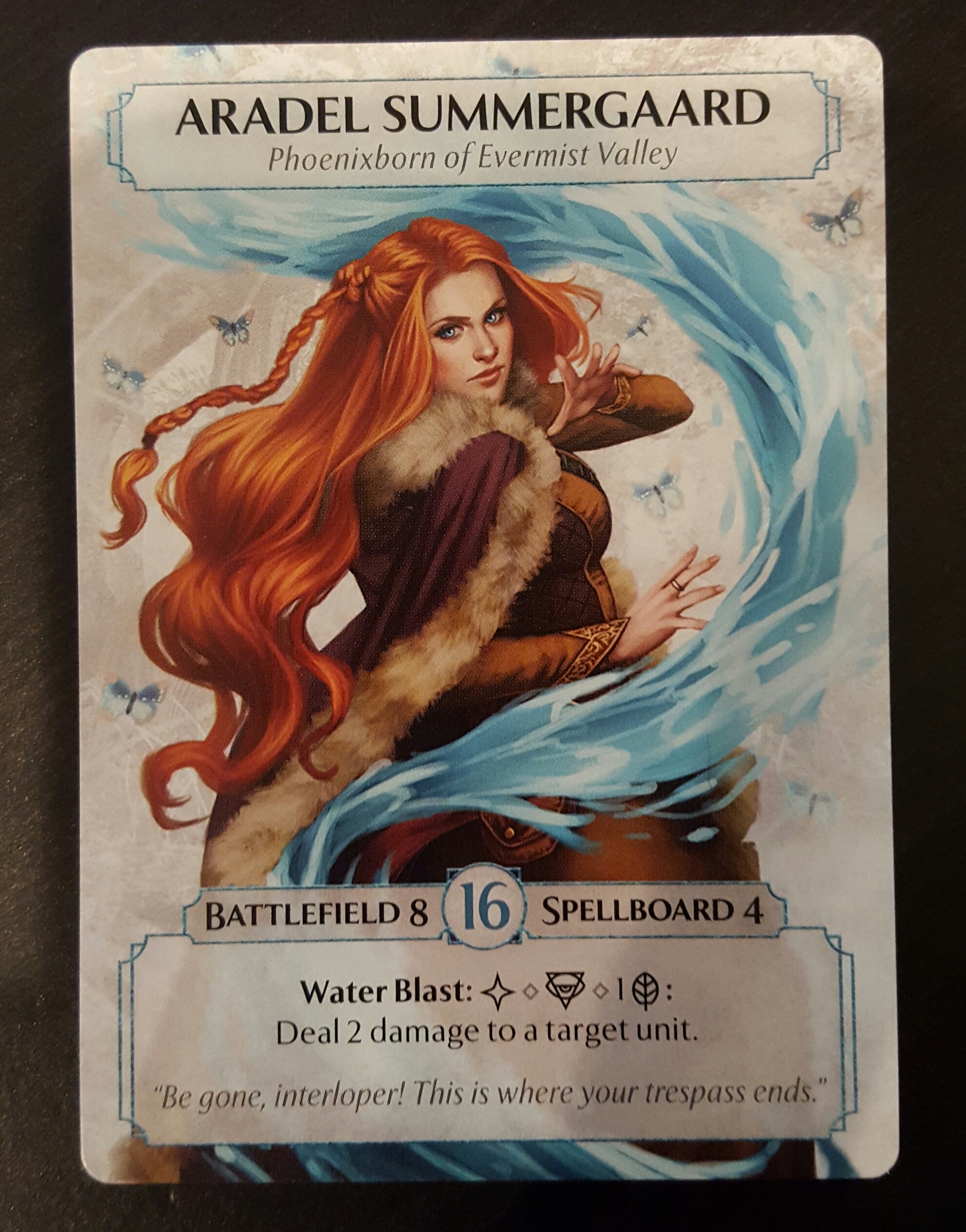 Each Phoenixborn has their own feel. For instance, Aradel Summergaard is made to summon lots of units to do battle for her. Her special ability also lets her do damage directly to her opponent’s units, which can really help clear the battlefield.