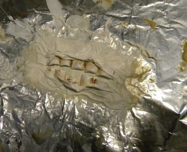 Dredge a kleenex in the latex and put it down on the tin foil, to that add your teeth and position them.