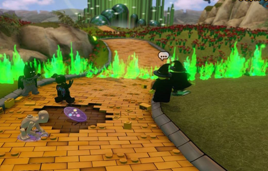 The first stop over is in Wizard of Oz, which – despite me never having seen the movie (I’m really bad at this) – I rather enjoyed. The witch is entertaining as hell. We got her not only because she can fly and blow up silver bricks, but I wanted an awesome witch character to play as. And for some reason, she’s super into everything we’re doing when you take her through the story. Just 100% optimistic, loves life, and — for some reason — really wants to go into business with everyone. Was that a major plot point in the Wizard of Oz? Did she have a shoe business with Glinda that went belly up?
