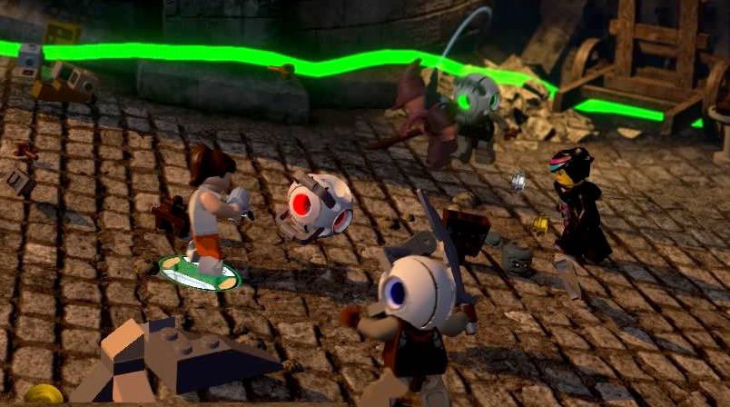 Middle Earth is again fine. They already did Lego LotR (and Lego Hobbit, which I didn’t play because Lord of the Rings is freaking enough Jackson! Let it go!). The great parts come from the bleed over. As the game goes on, dimensions become more and more corrupted, so we get Orcs running around wearing cores from Aperture Science as helmets.