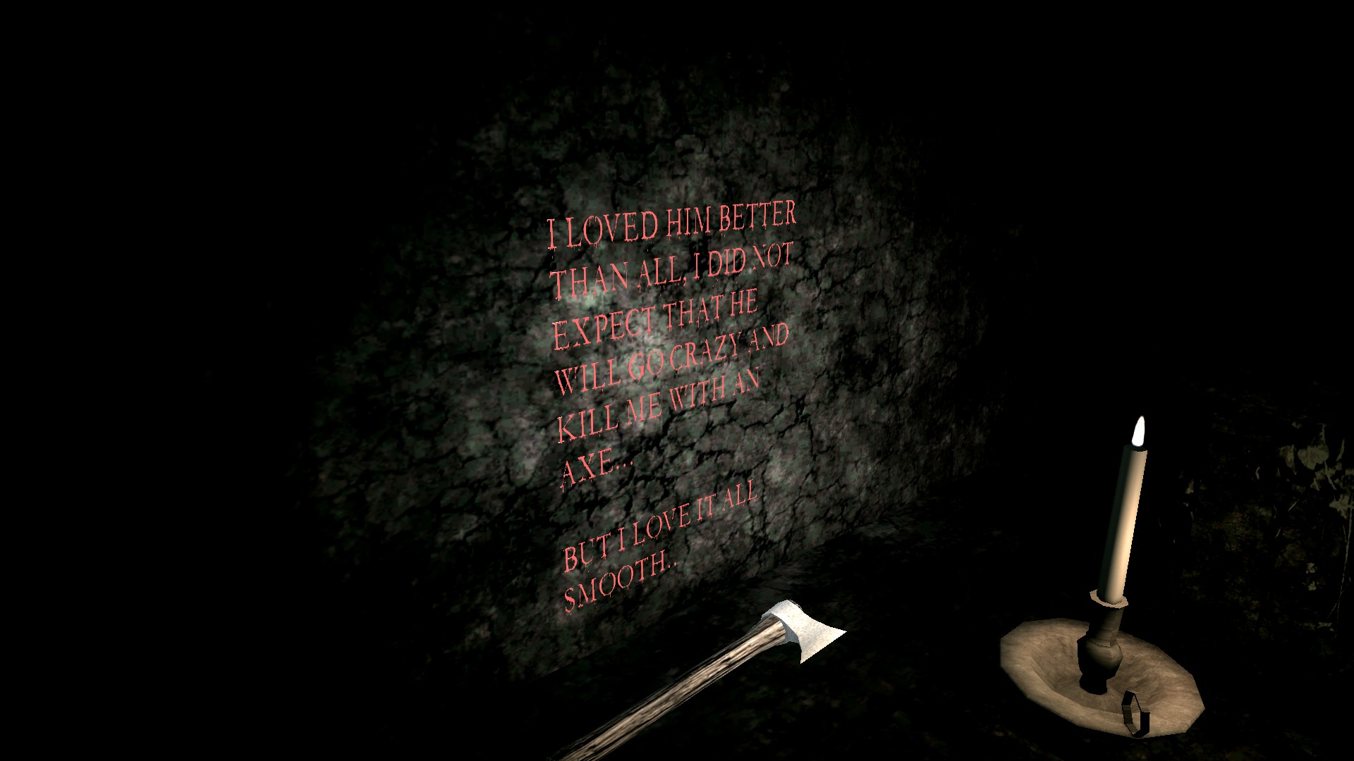 So I actually tried quitting this four minutes before I did. Except, trying to quit the game is just met with text saying ‘I can’t quit now’ and the game continues. So basically I was held against my will. NOT A GOOD DATE. Also the game is fucking awful. The framerate is diabolical, the plot is incomprehensible, and at one point a naked ogre just strolled through me, then through a door. The only ‘horror’ was whispering (which at least didn’t sound like blowjobs) and some bloodstains on the floor. And the controls. And the screen tearing. Literally the only good bit was when the game began with a quote by Aleister Crowley. And when I eventually Ctrl+Alt+Del’d out to the desktop and force quit. Seriously, I would rather eat my own ass than play this again.
