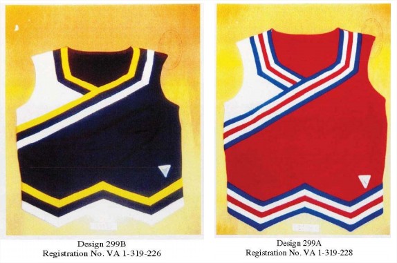 Basically, Varsity Brands, Inc. got their feathers ruffled when Star Athletica, LLC created a cheerleading uniform very similar to one of theirs. Are they too similar? Judge for yourself in these photos, directly from the court documents.