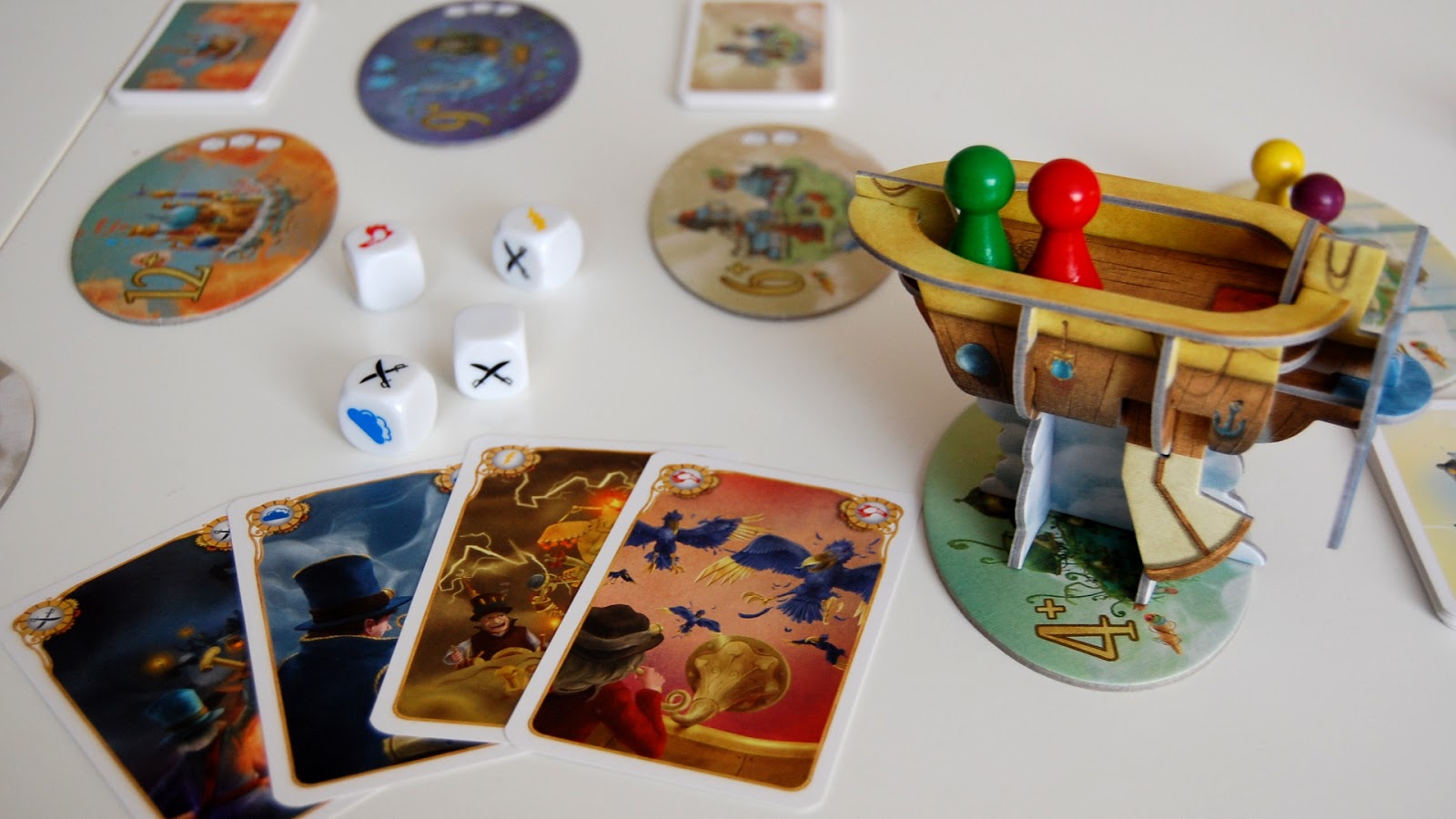 Celestia is a revamped version of Cloud 9, where you board an airship with a team of adventurers to explore the many cities of Celestia and recover its treasures along the way. This is a quick, push-your-luck game where the active player (the “Captain”) rolls “challenge” dice and must play the appropriate cards to overcome those challenges. Other players decide whether the captain will succeed, stating if they will abandon ship or stay along for the ride. Abandon ship, and you’ll remain stuck in that city, but able to plunder its treasure even if the ship crashes. Stay on the ship, and you risk going down with it. At the end of the game, the player with the most treasure wins. This is a very quick, fun, and well-made game, well worth the price. It comes with a 3D airship, and the artwork is gorgeous. A perfect game to play at the beginning of game night while waiting for people to show up.