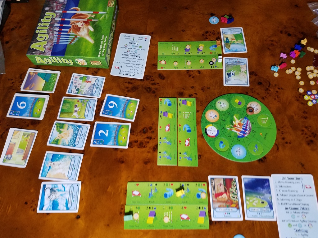 My husband and I stumbled upon this game, and I’m so happy that we did! In this game, you play as dueling dog trainers, drafting pups, acquiring obstacle courses, and training your pups to make it through the courses. The first person to get three dogs to complete obstacle courses wins. The game employs cards that both provide resources and give you actions, as well as a cool, customizable wheel where you select those actions. As in any good two player game, you must plan cleverly and time your moves just so in order to stay ahead of your opponent. Plus, super cute and colorful dog meeples and wooden treat resource pieces. If you ask nicely (and pay a small fee), the designer of the game may customize some pieces for your own pups! This is a quick, fun, strategic two player game that will definitely appeal to dog lovers (especially lovers of dog shows/agility competitions), but will also appeal to others who love a good competitive strategy game.