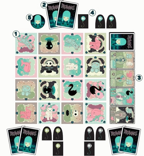 This game is worth playing solely to admire Tara McPherson’s artwork. My goodness. The game can be played with up to four people, but I found that it works very well with two. In this game, you’re trying to rescue your friends who are lost in the Dreamwell, a surreal world inhabited by weird creatures and dreamy landscapes that intends to keep the souls of your friends. The “Dreamwell” is represented by a 4×4 grid of tiles, randomly oriented, each featuring a creature and a landscape. Each player gets two pawns and two cards to start, and you use the pawns to locate the creatures and environments that match your cards in order to save the friends represented on the cards. The first person to locate seven friends triggers the end of the game, and when the round is over, points are tallied and a winner is determined. This is a game of intense matching, and it seems very simple and innocuous at first, but as you play, you realize there are many layers and a lot more strategy to this game than it seems. Plus, I’ll say it again: THE ARTWORK IS SO AMAZING.