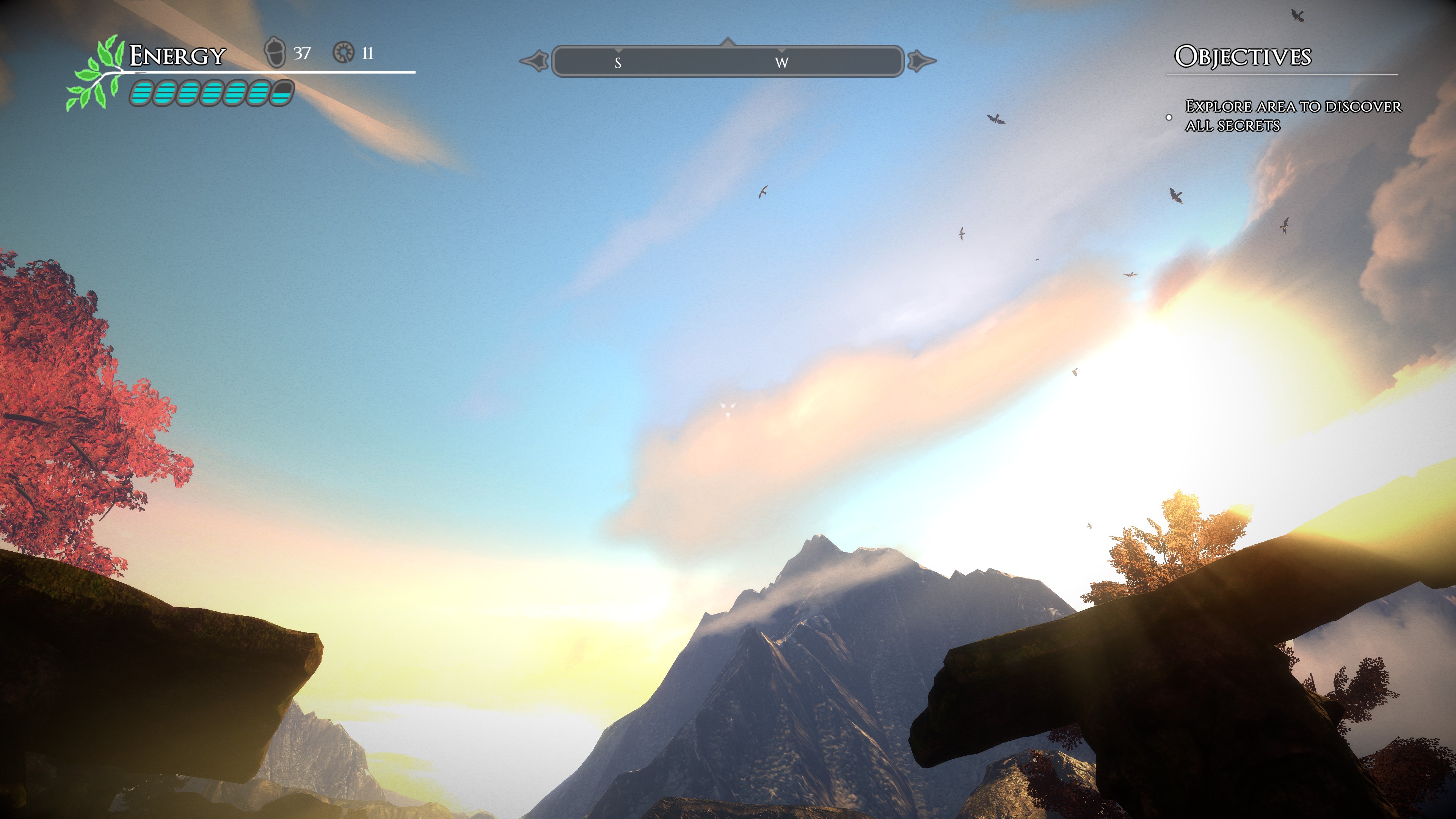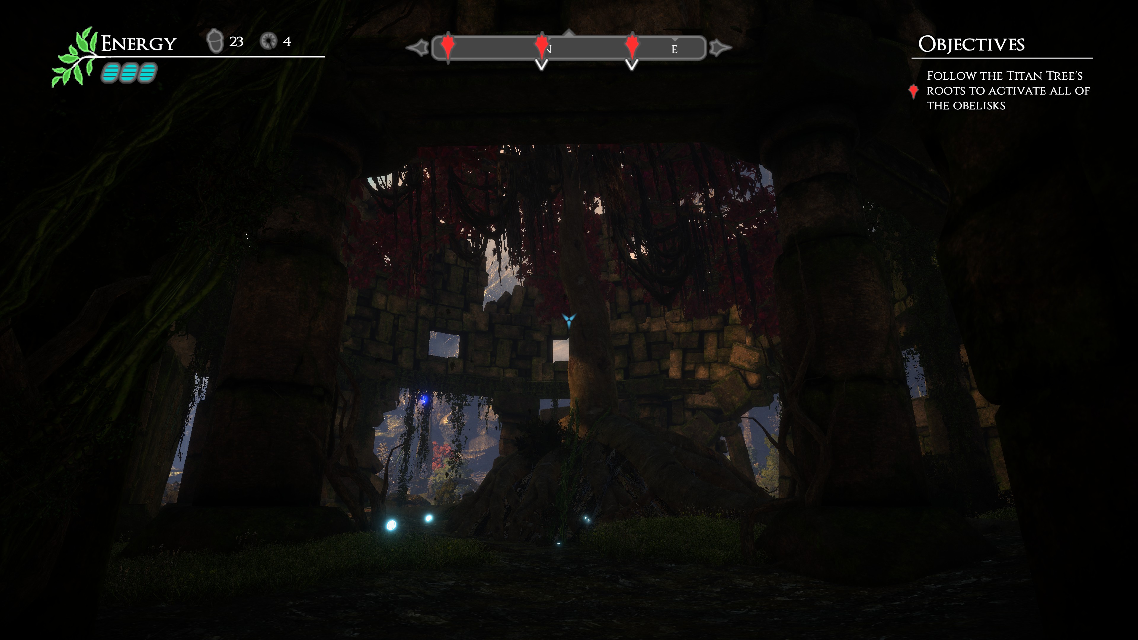 One thing I’ve really enjoyed so far about the game is that backtracking is actually something worth doing, and even though you can speedrun through the game if desired (and miss all the wonderful scenery and hidden lore!), exploration will yield various upgrades that will make the game easier to play. Beyond the ability to collect acorns and medallions (which open special doors), you’ll also find energy canisters (or complete tanks) that will increase the amount of energy that your LEAF suit can hold at any given time.